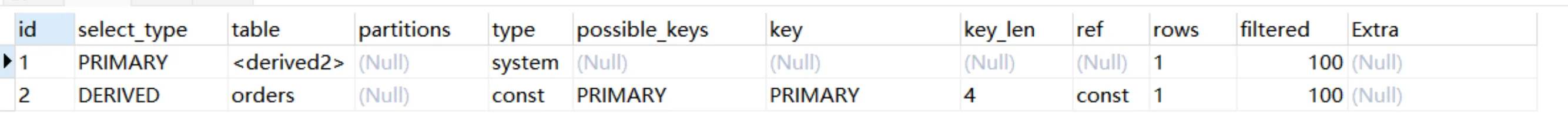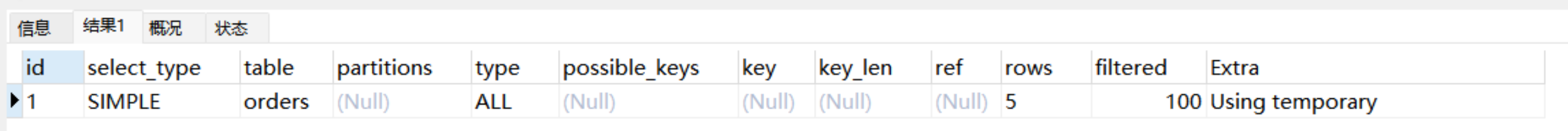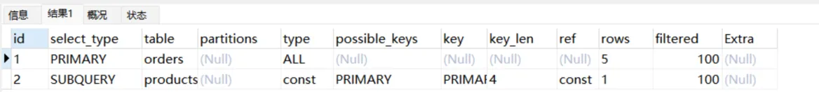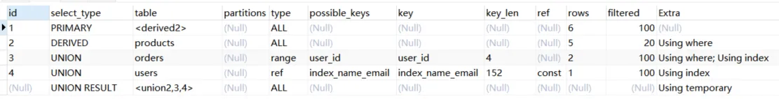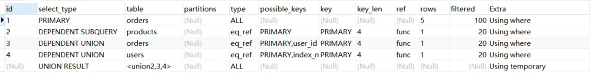 ●如果显示NULL,最后执行。表示结果集,并且不需要使用它来进行查询。