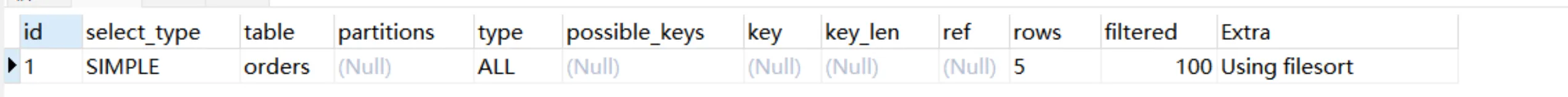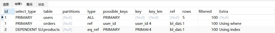 接下来我们将展示Explain中每个列的信息
