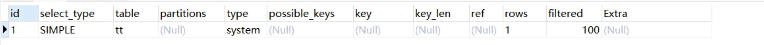 5.1.system:const类型的一种特殊场景,查询的表只有一行记录的情况,并且该表使用的存储引擎的统计数据是精确的
