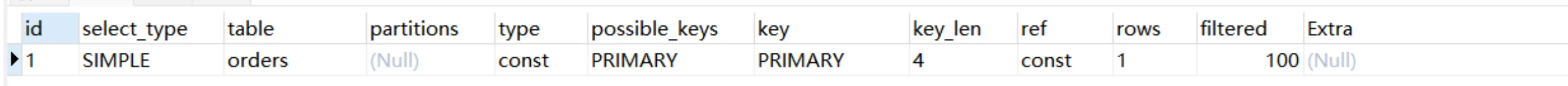 select * from orders where id = 1;