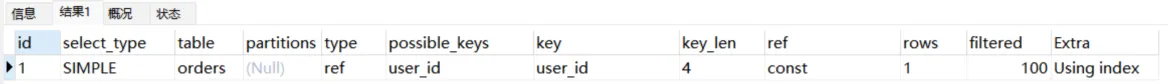 select * from orders where user_id = 1;