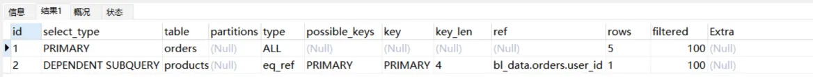 EXPLAIN select * from users WHERE id in (select user_id from orders where id = 1);