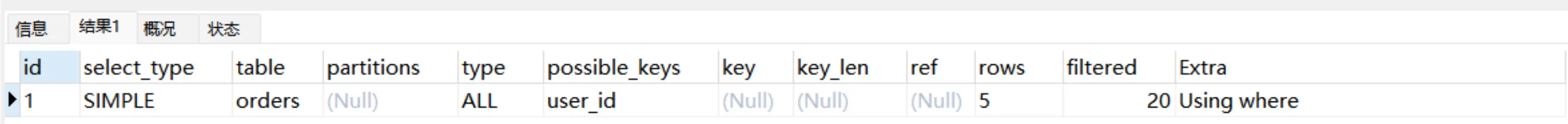 接下来我们将展示Explain中每个列的信息