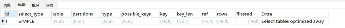 12.6.Select tables optimized away:使用某些聚合函数(min,max)来访问某个索引值。